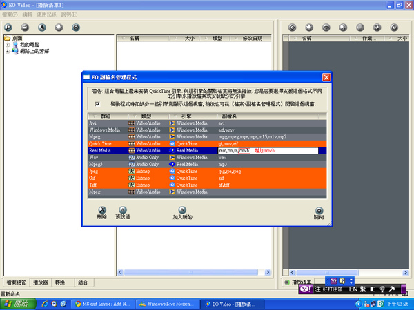 開啟EO Video軟體,會看到如下畫面,接著新增一個”附檔名”為rmvb