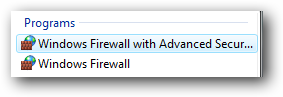 Type in firewall into the start menu search box, and you want to choose “Windows Firewall with Advanced Security”.