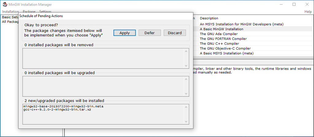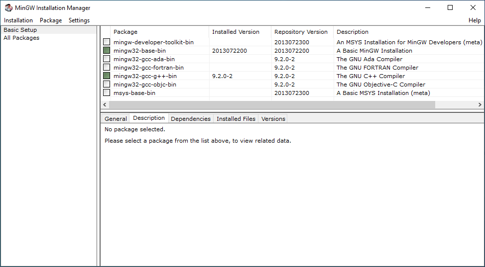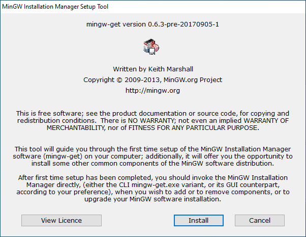 2. 執行 mingw-get-setup.exe 安裝檔工具。按 Install 進行安裝。
