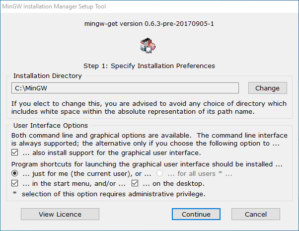 1. 到 MinGW 網站下載 mingw‑get‑setup。